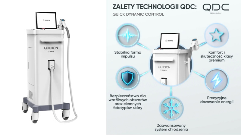 - Quidion = maksymalnie skuteczna depilacja, także na ciemniejszych fototypach, plus lekki lifting skóry.